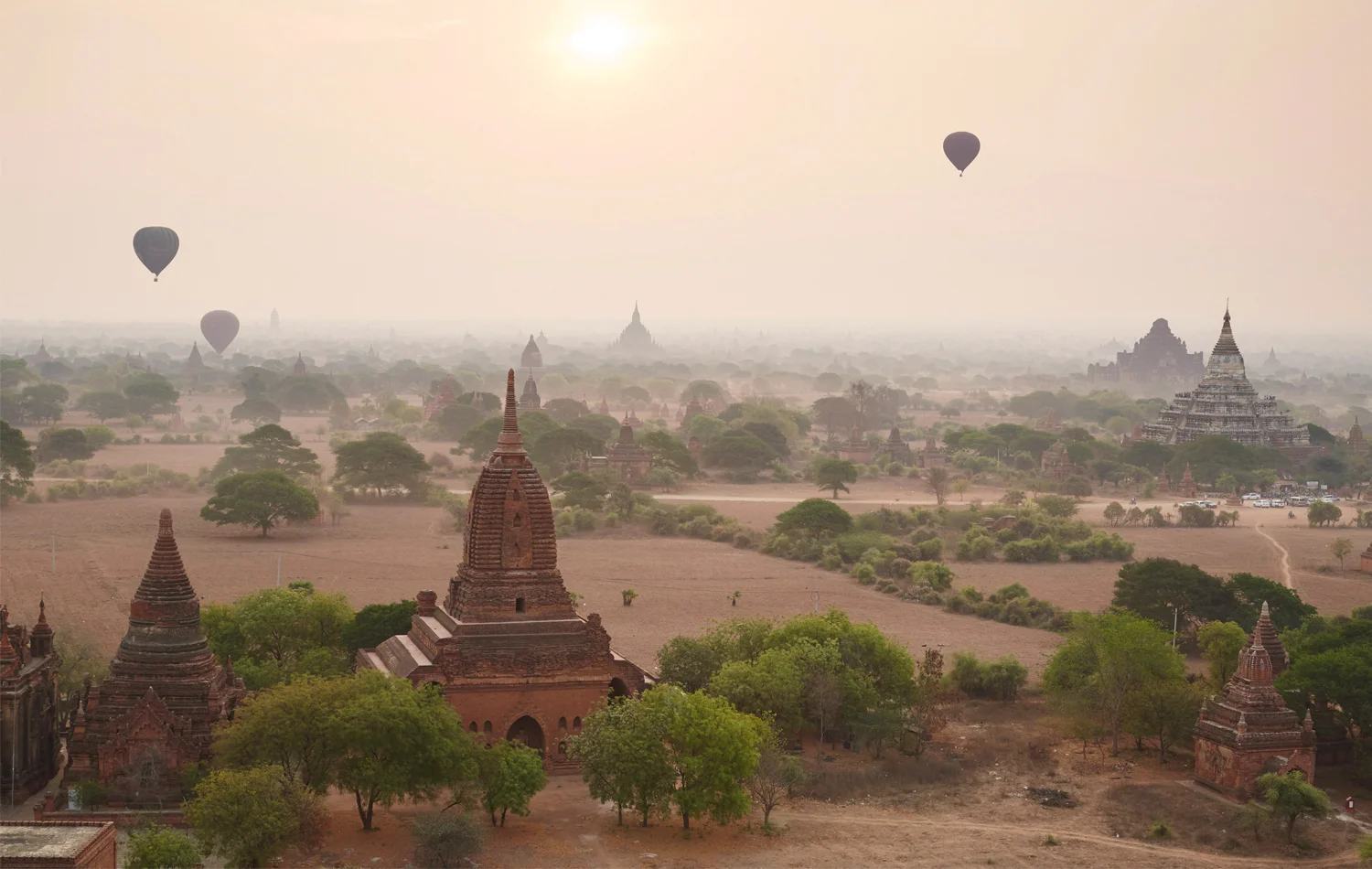 From Yangon we travel to Bagan in central Myanmar, a dry plain studded with more than 2000 temples dating back to the 12th century. A stop at the dazzling Shwezigon Pagoda is followed by the frescoed Gu Byauk Gyi, each connected by a road bordered by toddy palms and sesame fields, along which we encounter as many ox-drawn carts as cars. The former capital is known for its lacquerware and we visit a workshop where horse hair and stripped bamboo are woven into concave shapes, then layers of dyed Gluta usitata tree resin applied until beautiful bowls are formed.
